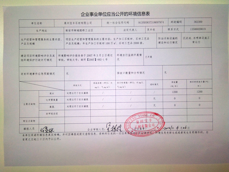 泉州寶豐石材有限公司企業(yè)信息公開(kāi)表